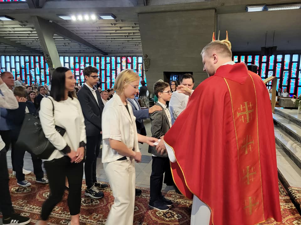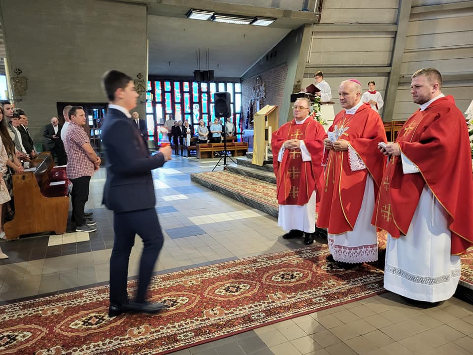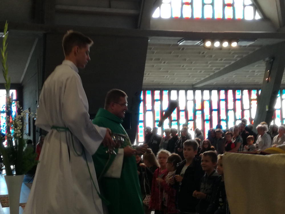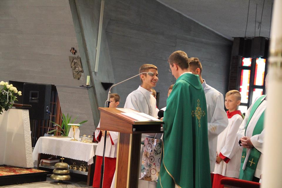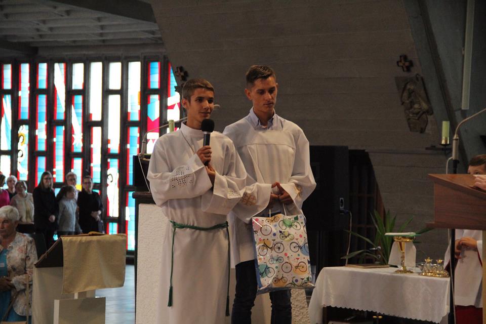 10 września na Mszy św. o godz. 9.30 razem z ks. Michałem Misiem dziękowaliśmy Bogu za 3 lata jego posługi w naszej parafii. Przed błogosławieństwem parafianie wyrazili swoją wdzięczność poprzez podziękowania i drobne upominki.