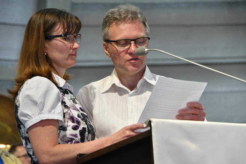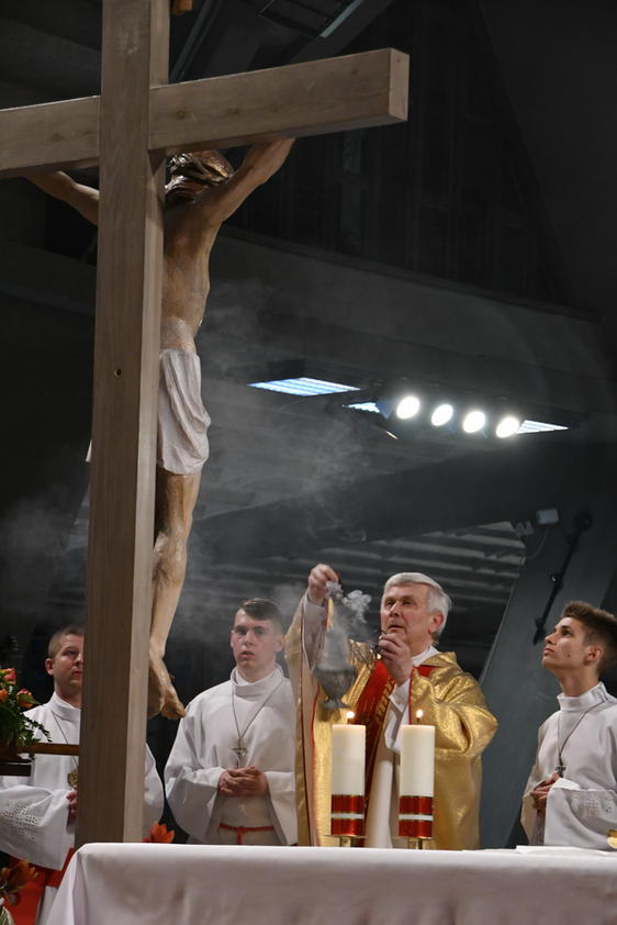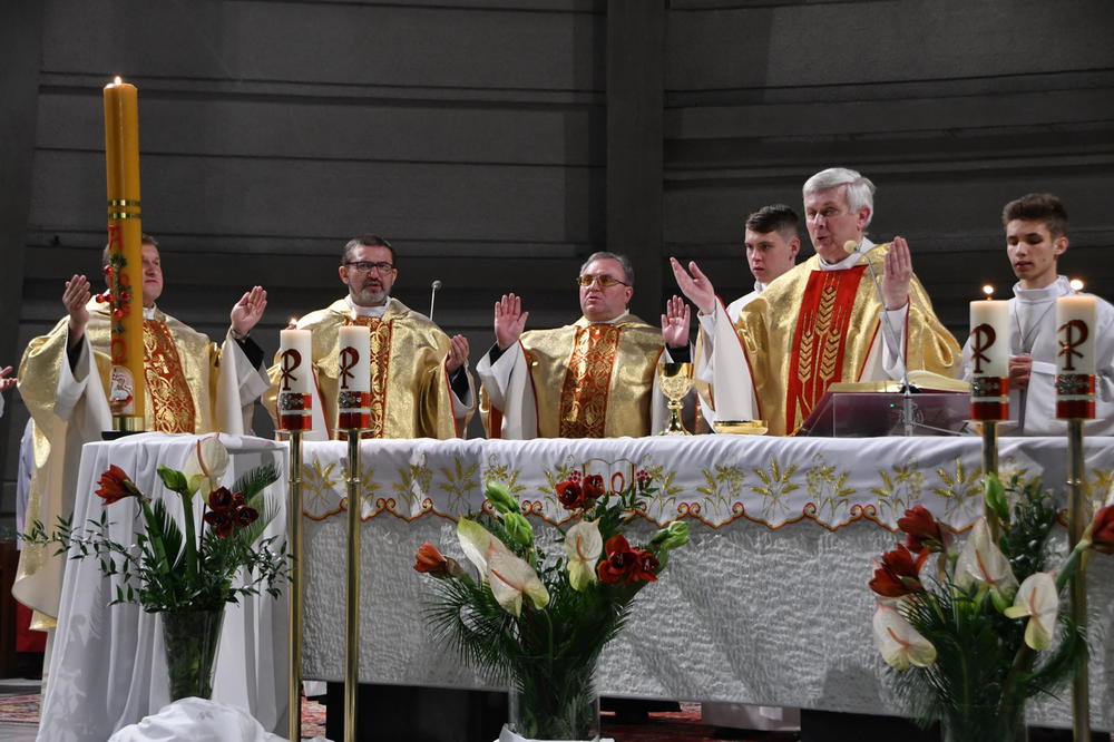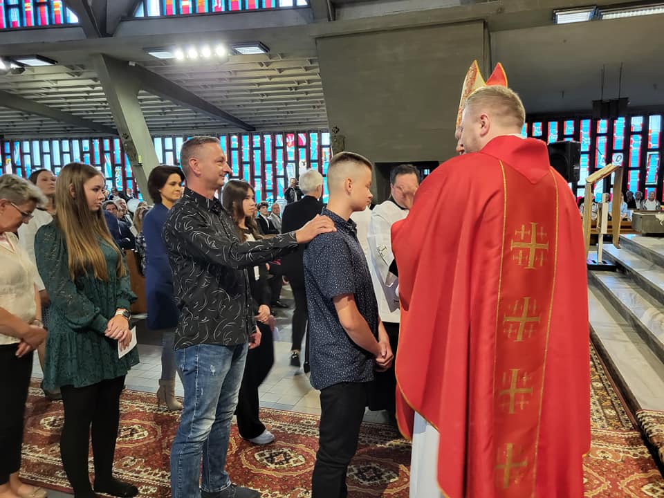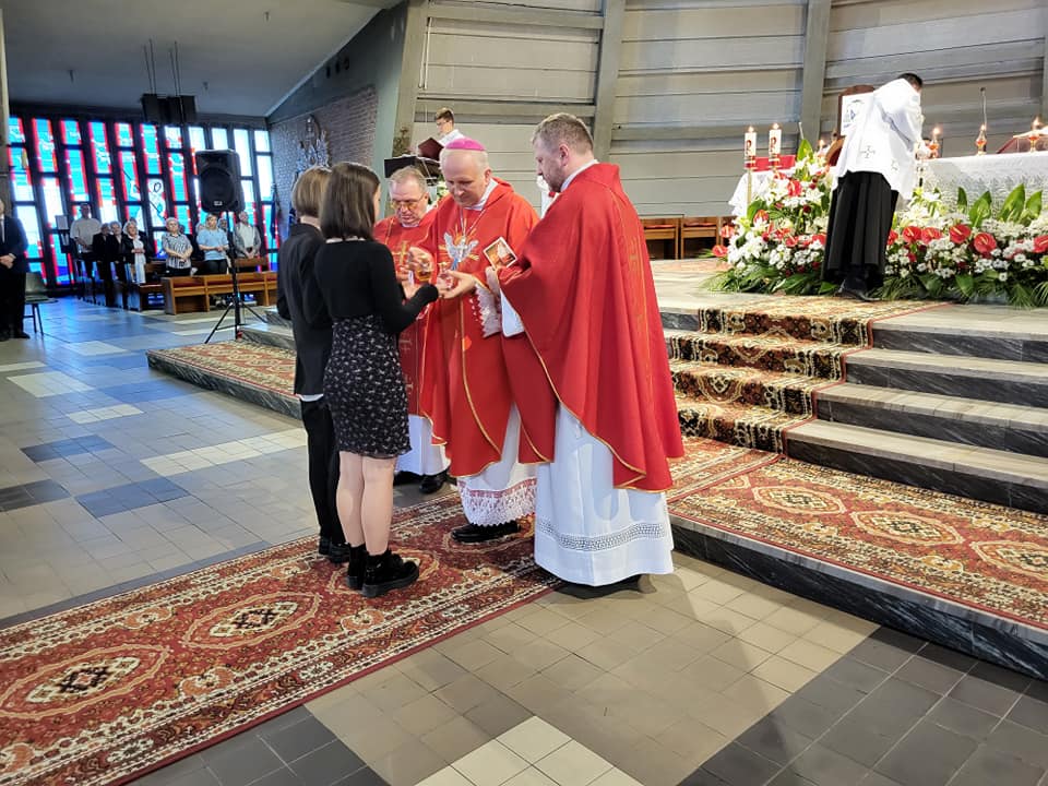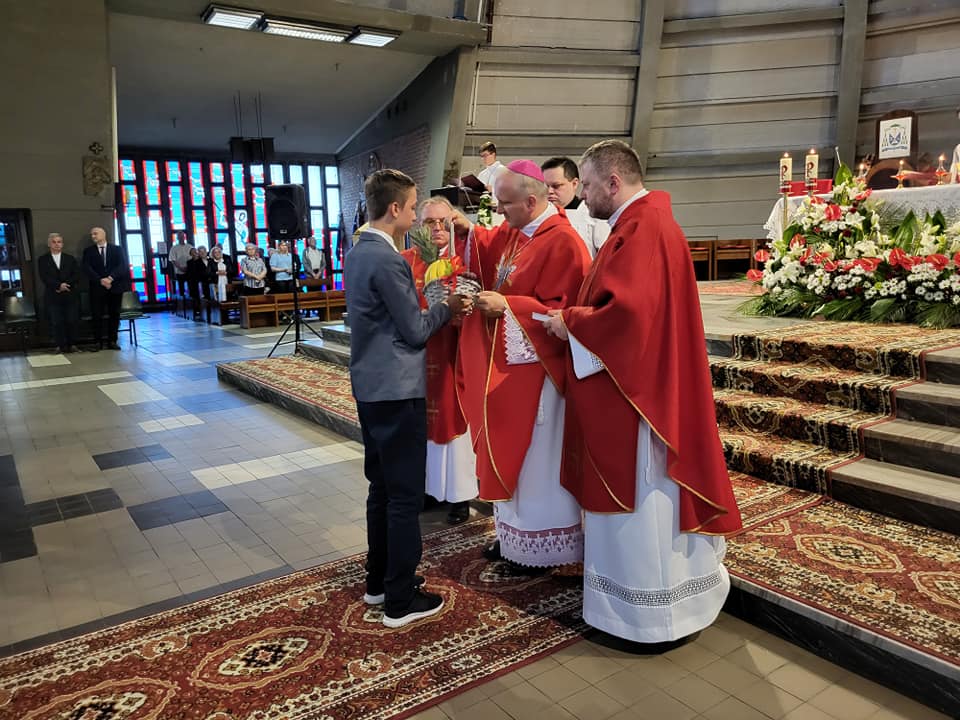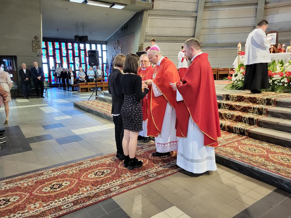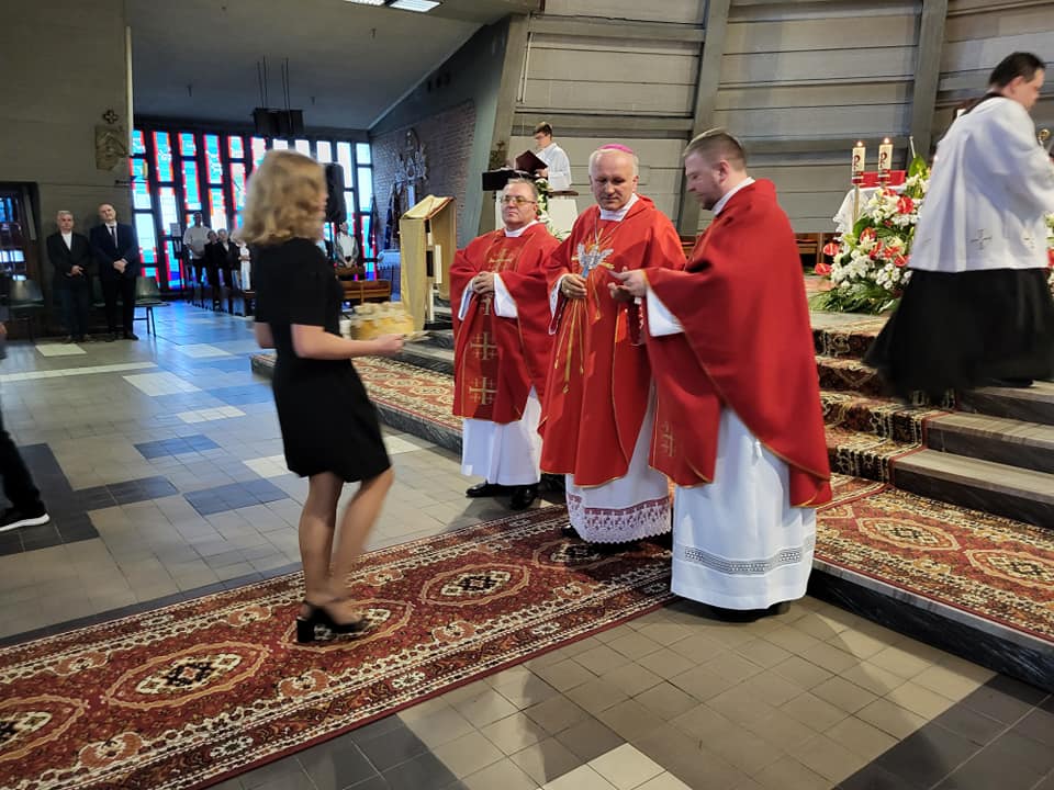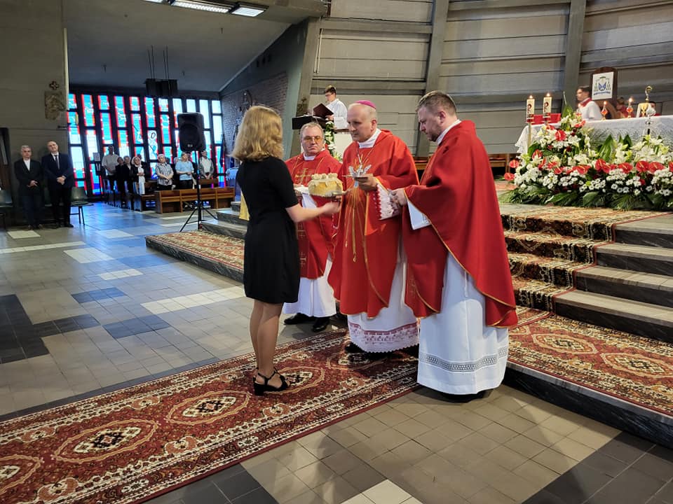 Na zakończenie uroczystości pan poseł Jan Mosiński wraz z małżonką podziękowali ks. Biskupowi za sprawowanie Eucharystii i słowo skierowane do wiernych zgromadzonych w świątyni i uczestniczących poprzez Internet. Pan Jan podziękował szczególnie za słowa: solidarni w złym i solidarni w dobrym.