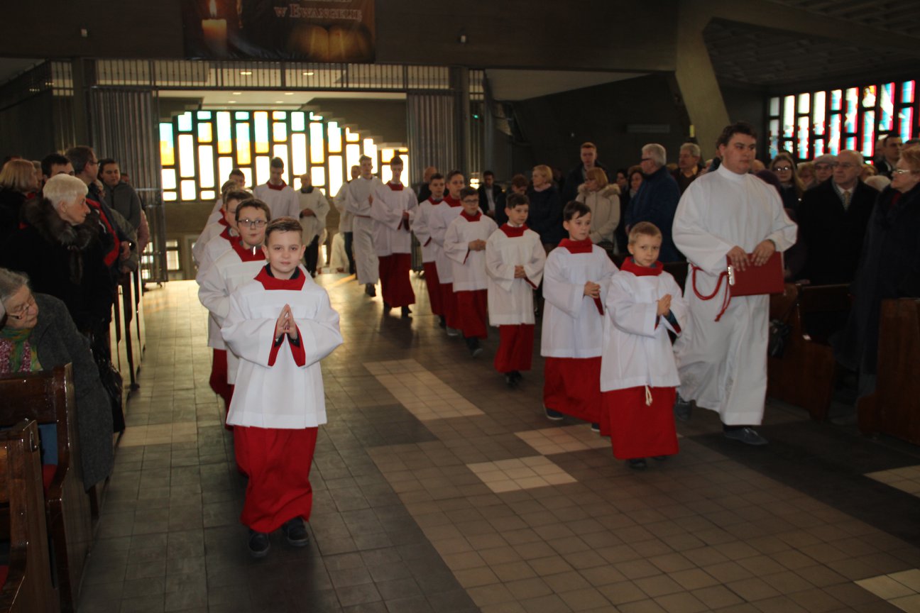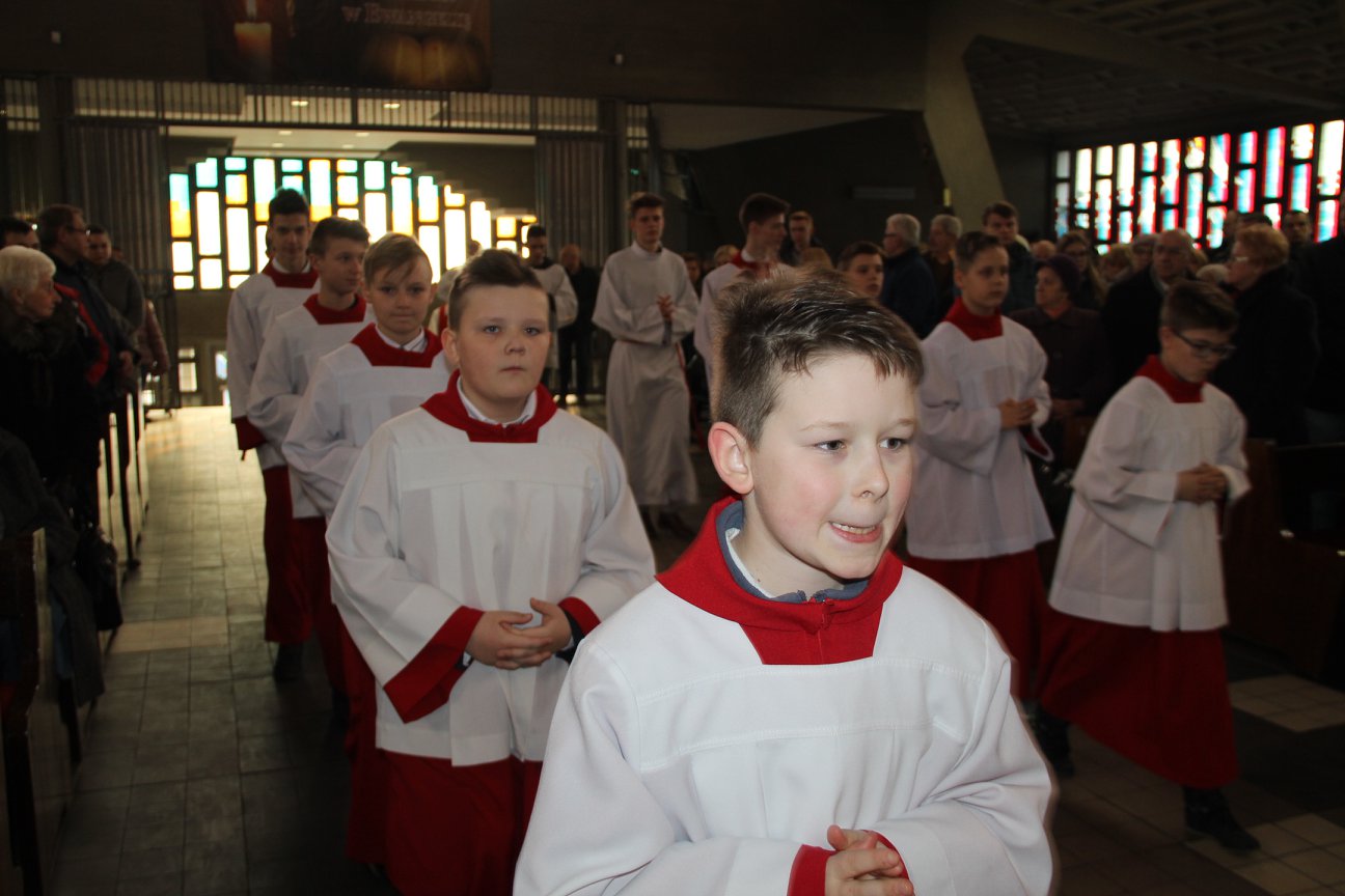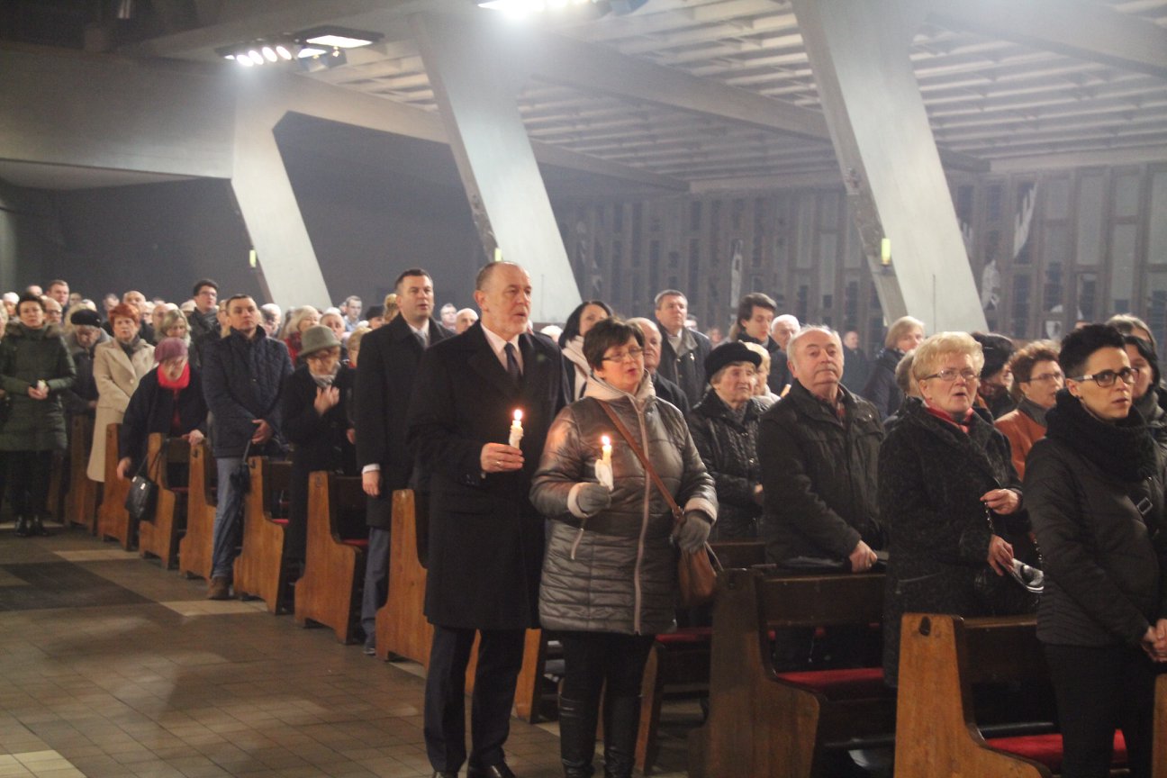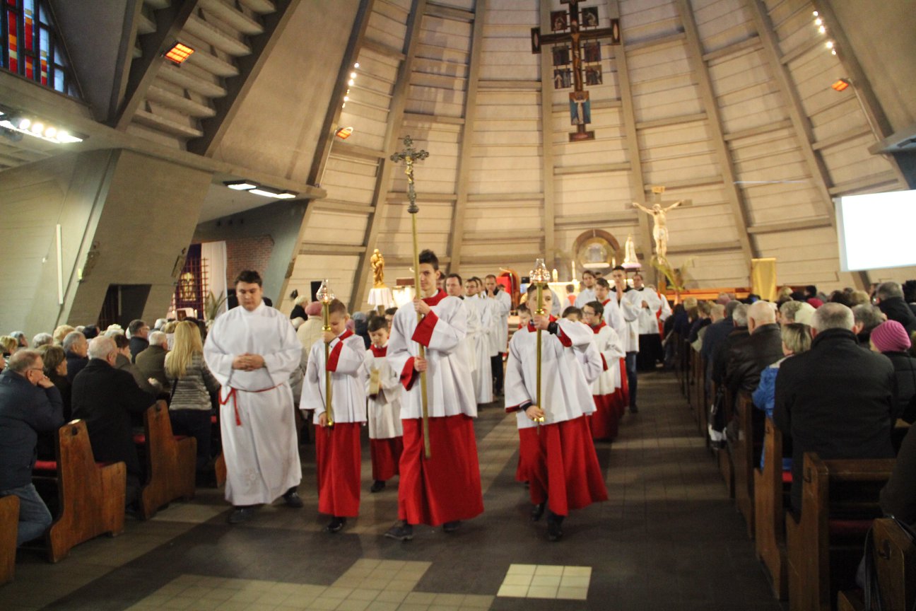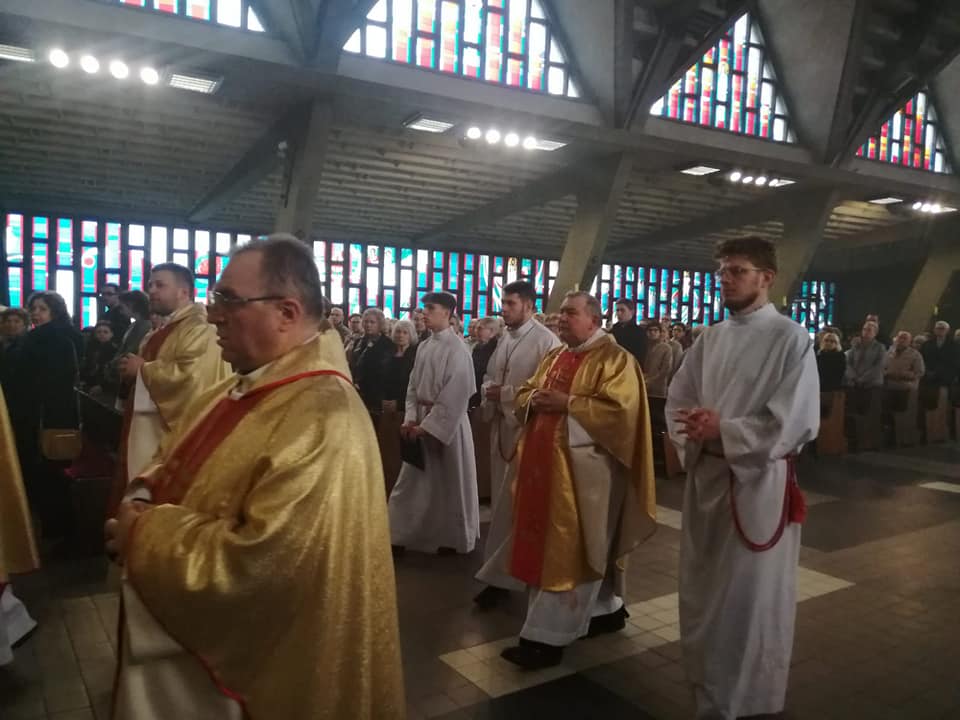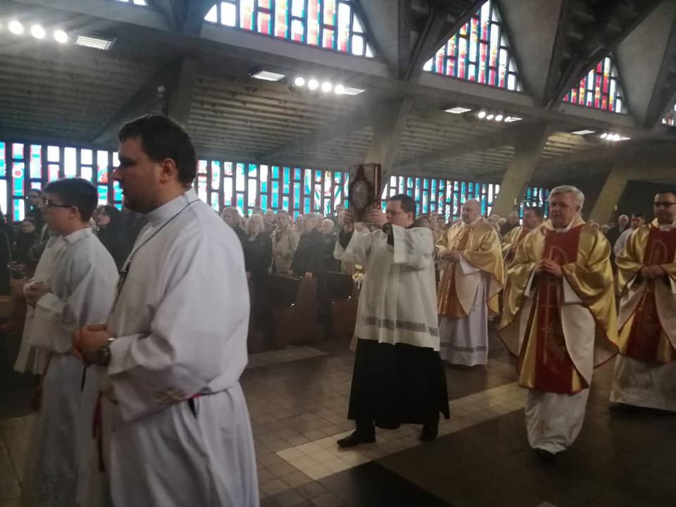 W niedzielę, 17 stycznia 2016 r. podczas Mszy św. o godz. 12.30, koncelebrowanej przez biskupa Edwarda Janiaka, radcy i ekonoma prowincjalnego – ks. dra Grzegorza Sikorskiego, ks. prob. Tadeusza Błaszczyka, ks. Arkadiusza Nowackiego, ks. prał. Stanisława Tofila, zostały uroczyście wniesione do świątyni Matki Kościoła, przez Zarząd Solidarności, relikwie bł. ks. Jerzego Popiełuszki. Ks. Proboszcz słowami krótkiej modlitwy przyjął do świątyni relikwie bł. Ks. Jerzego. Następnie kilka słów o uczestnikach tej pięknej uroczystości
