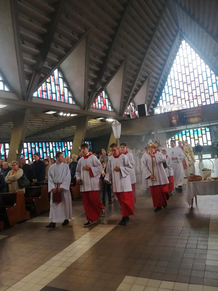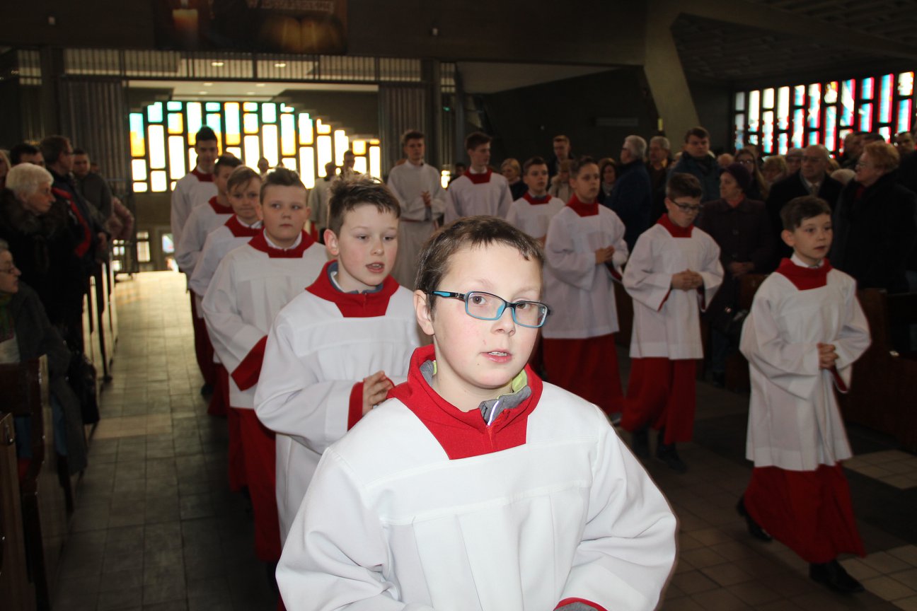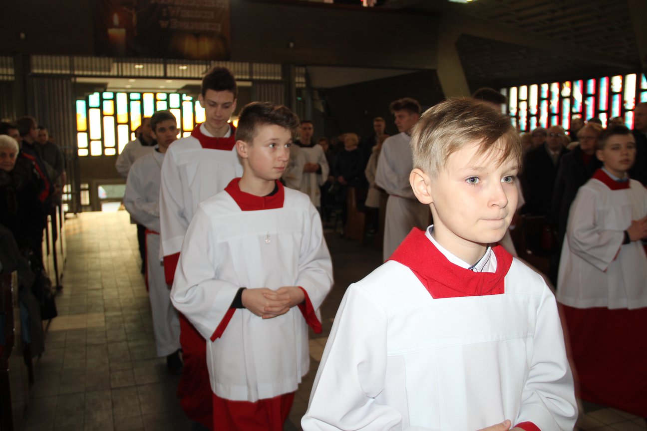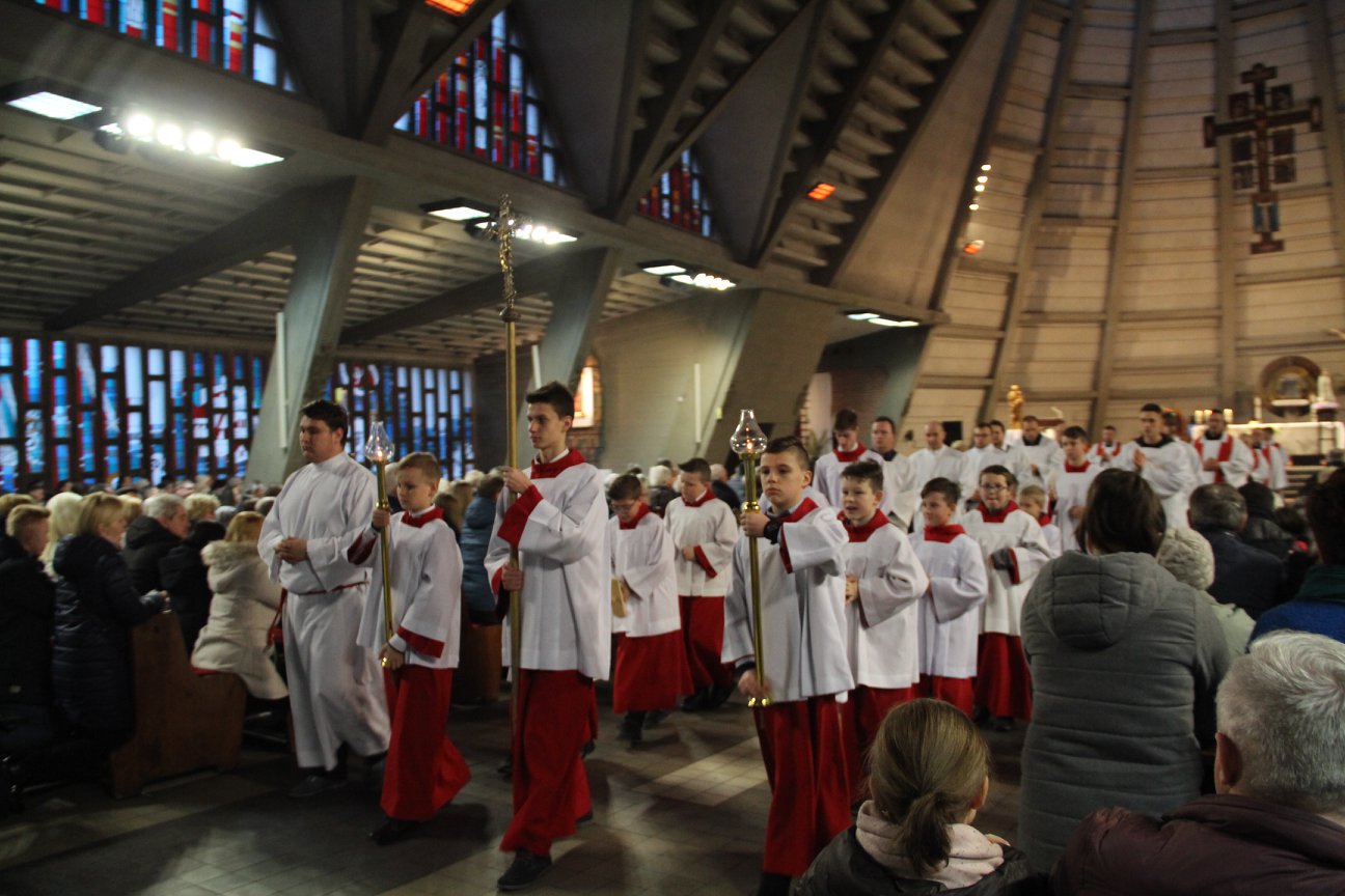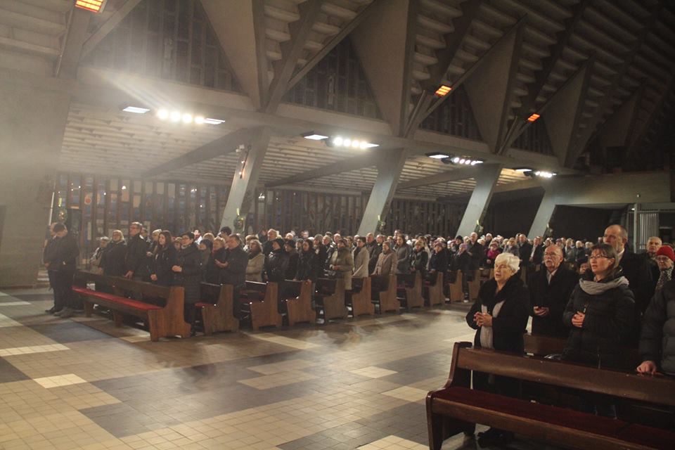 W niedzielę, 17 stycznia 2016 r. podczas Mszy św. o godz. 12.30, koncelebrowanej przez biskupa Edwarda Janiaka, radcy i ekonoma prowincjalnego – ks. dra Grzegorza Sikorskiego, ks. prob. Tadeusza Błaszczyka, ks. Arkadiusza Nowackiego, ks. prał. Stanisława Tofila, zostały uroczyście wniesione do świątyni Matki Kościoła, przez Zarząd Solidarności, relikwie bł. ks. Jerzego Popiełuszki. Ks. Proboszcz słowami krótkiej modlitwy przyjął do świątyni relikwie bł. Ks. Jerzego. Następnie kilka słów o uczestnikach tej pięknej uroczystości