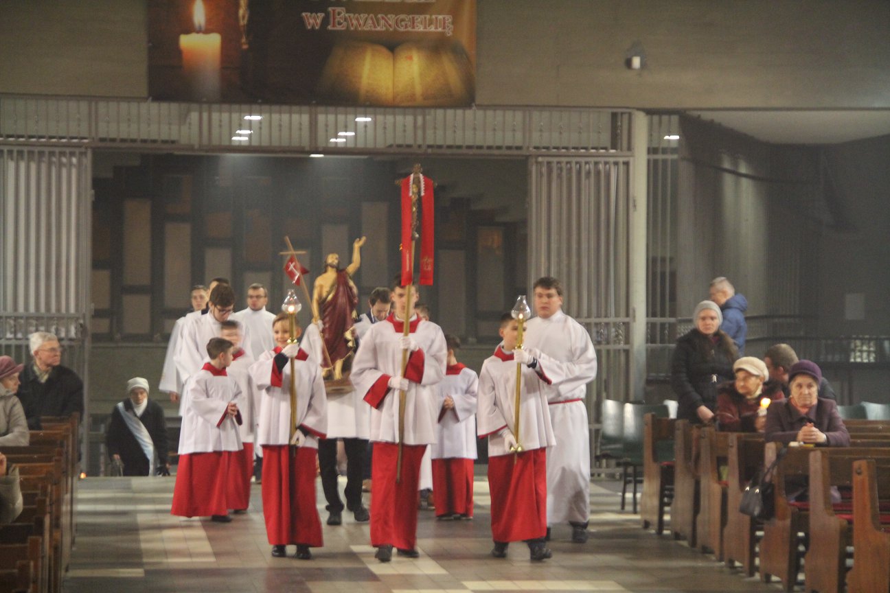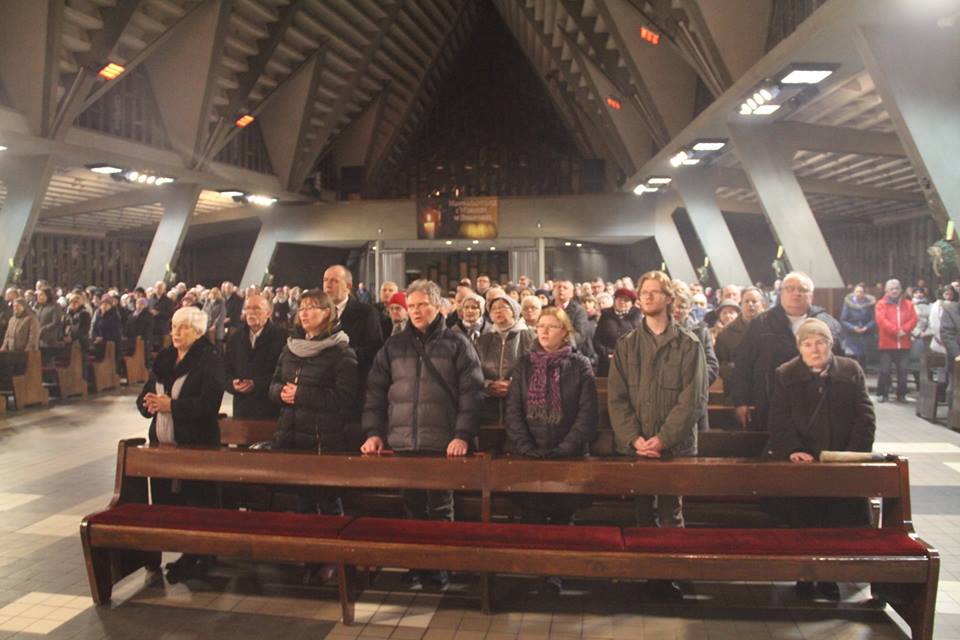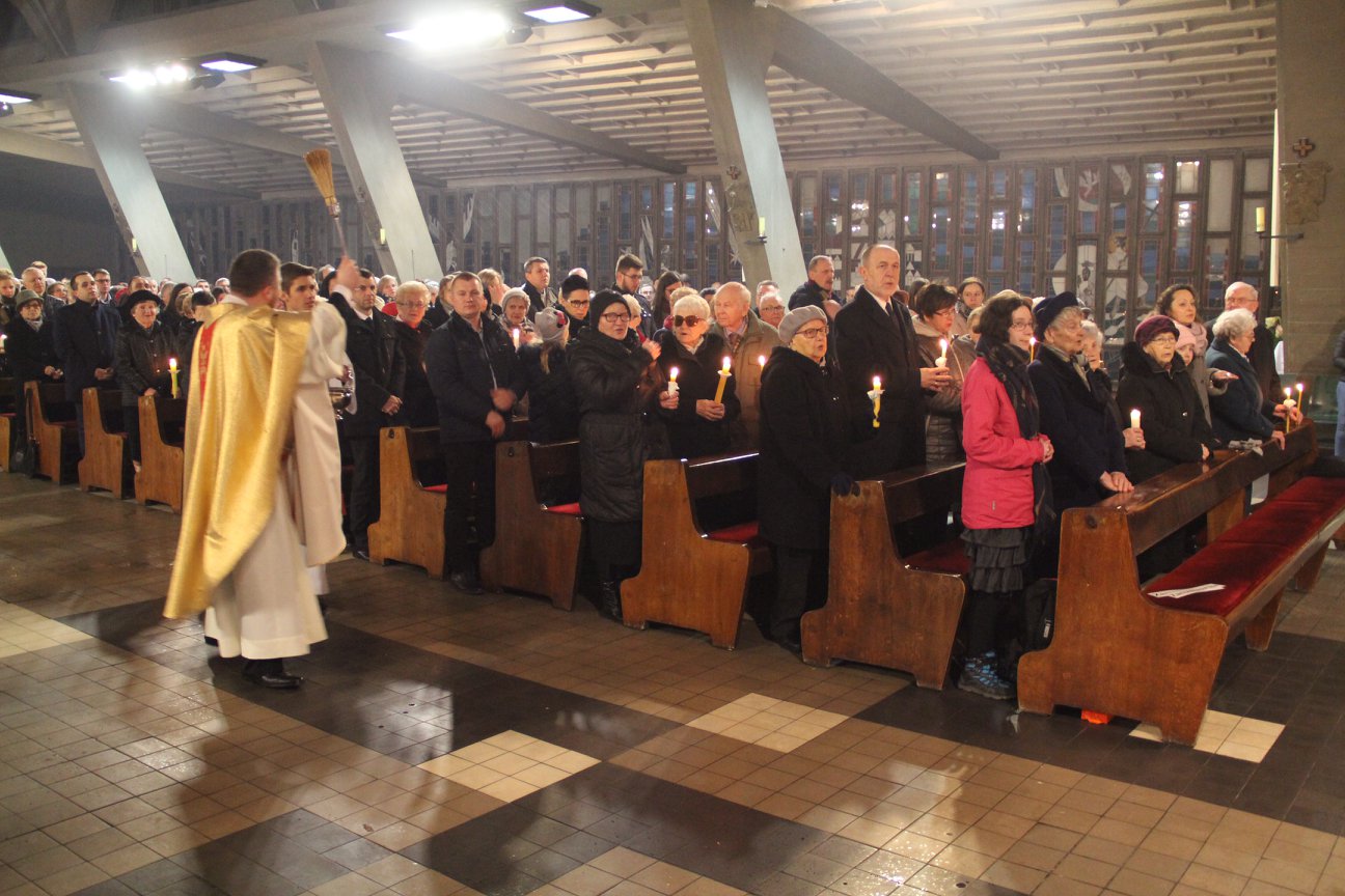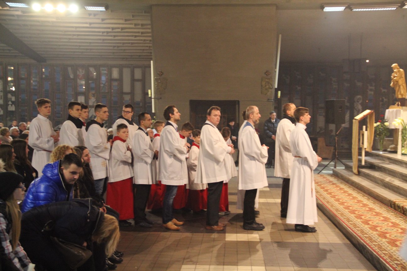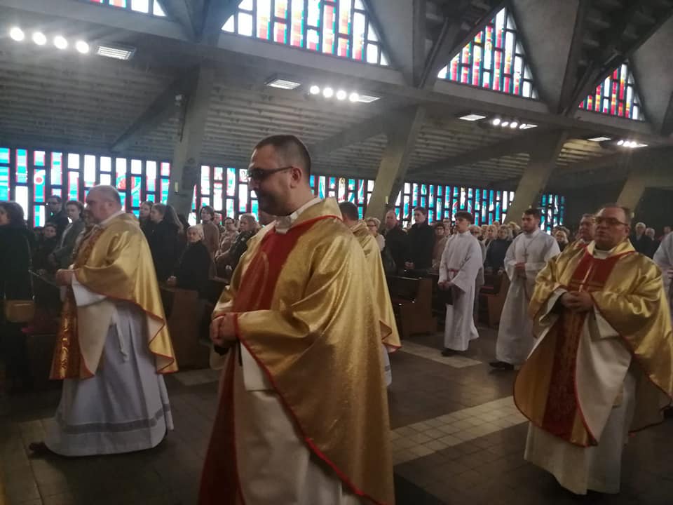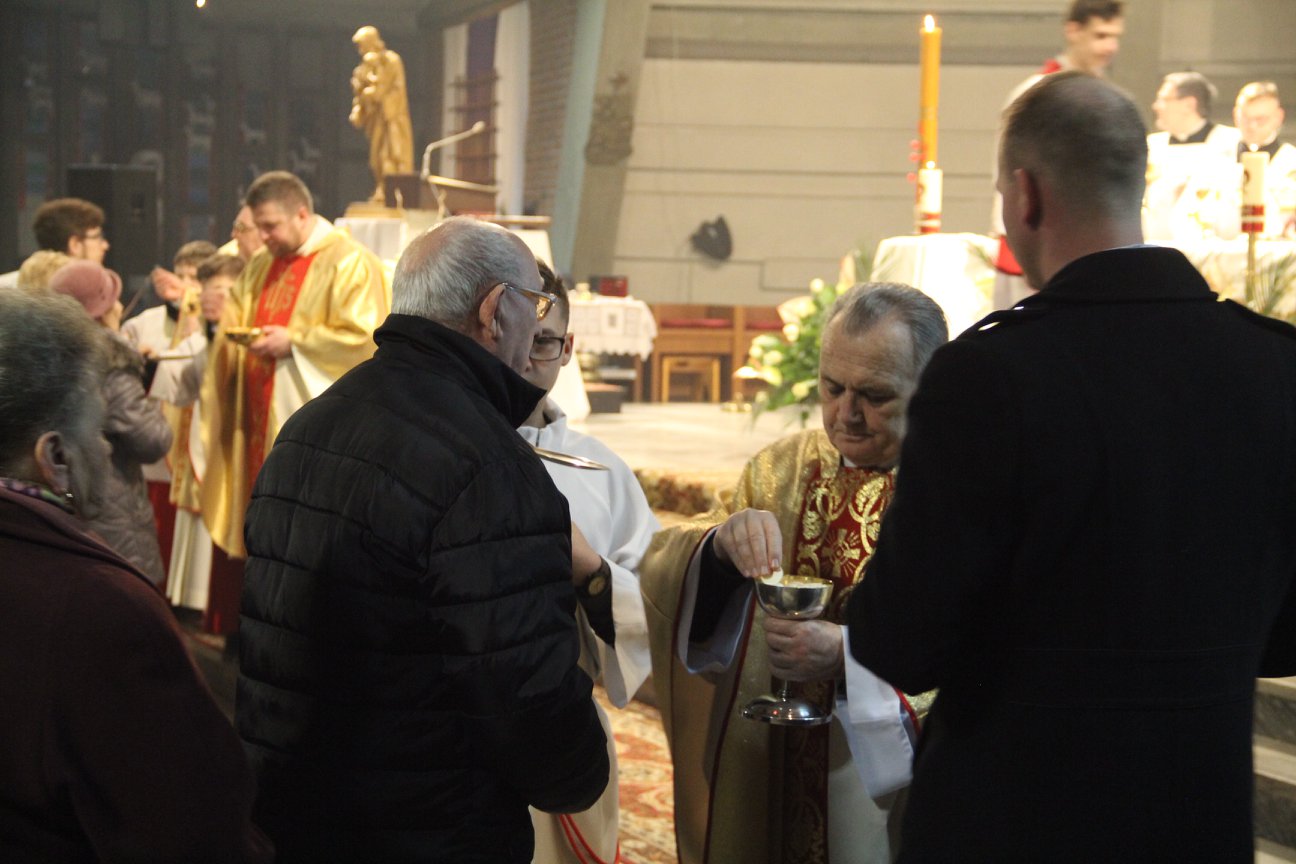 W niedzielę, 17 stycznia 2016 r. podczas Mszy św. o godz. 12.30, koncelebrowanej przez biskupa Edwarda Janiaka, radcy i ekonoma prowincjalnego – ks. dra Grzegorza Sikorskiego, ks. prob. Tadeusza Błaszczyka, ks. Arkadiusza Nowackiego, ks. prał. Stanisława Tofila, zostały uroczyście wniesione do świątyni Matki Kościoła, przez Zarząd Solidarności, relikwie bł. ks. Jerzego Popiełuszki. Ks. Proboszcz słowami krótkiej modlitwy przyjął do świątyni relikwie bł. Ks. Jerzego. Następnie kilka słów o uczestnikach tej pięknej uroczystości