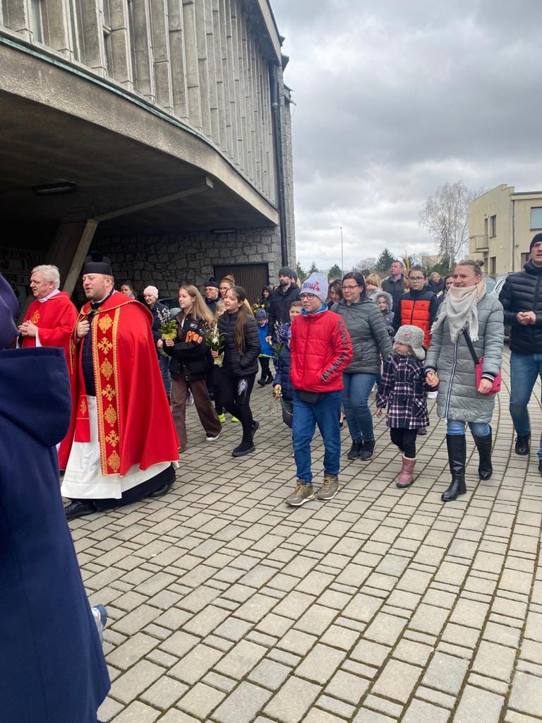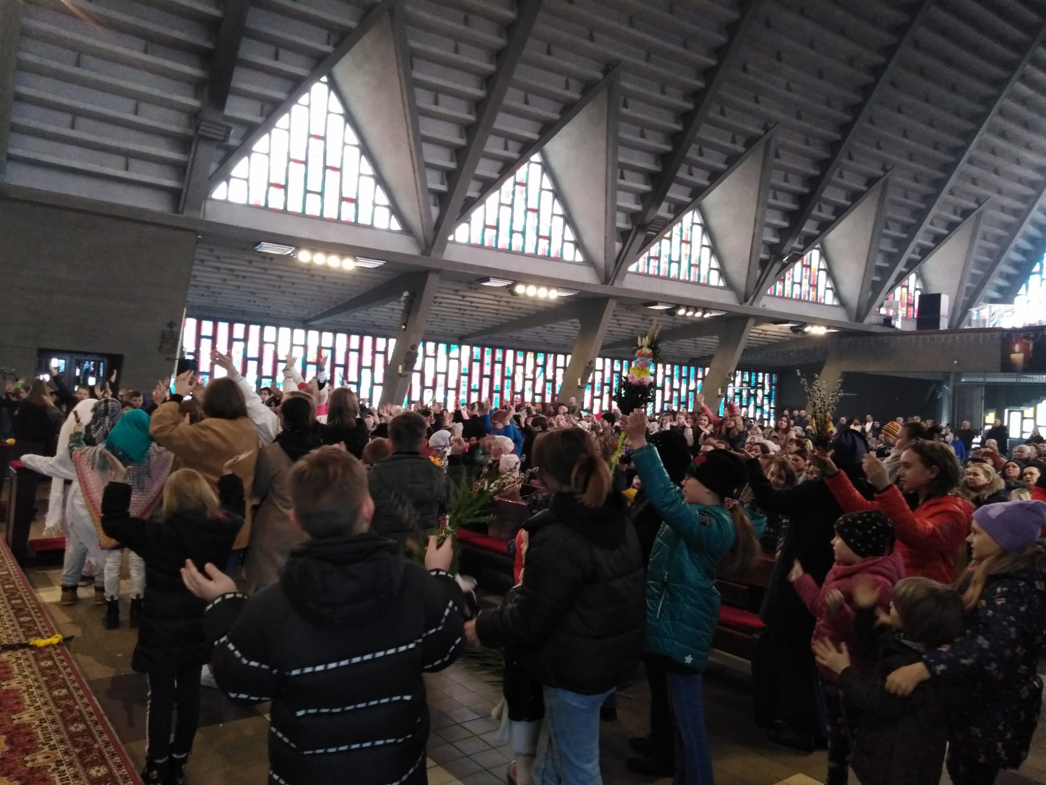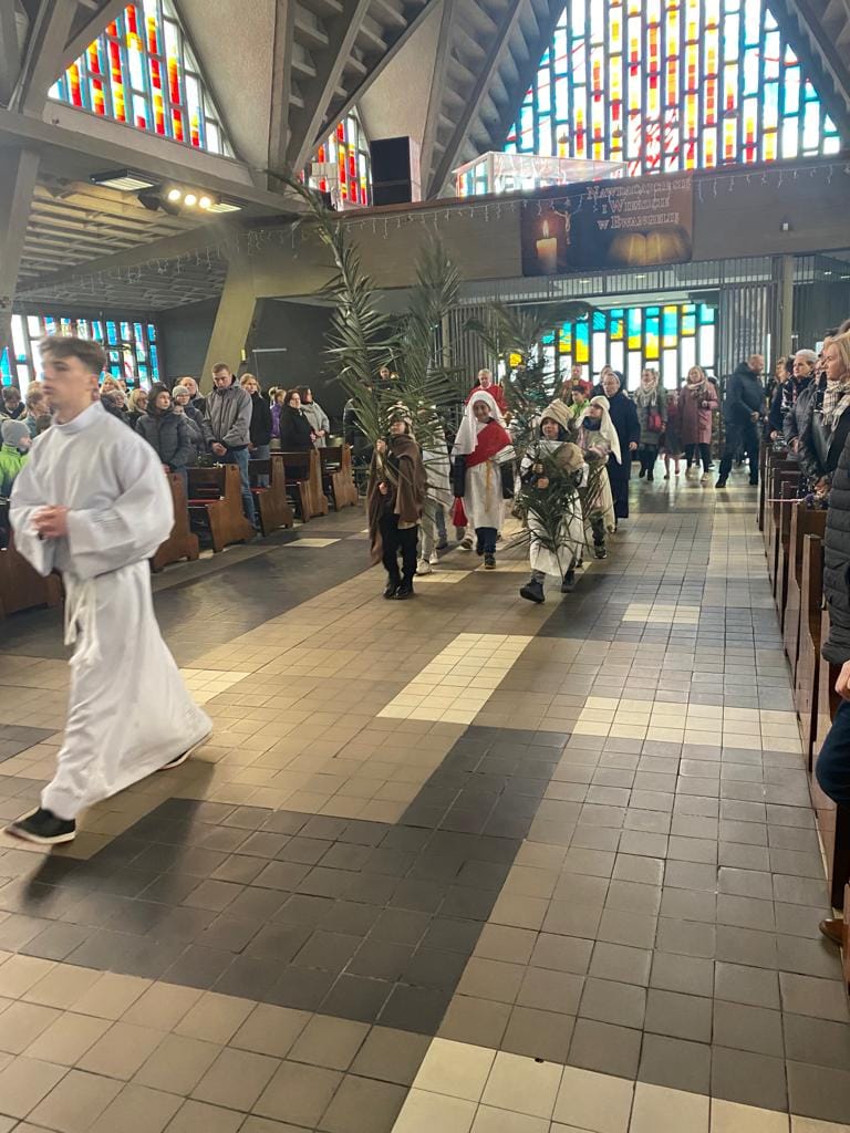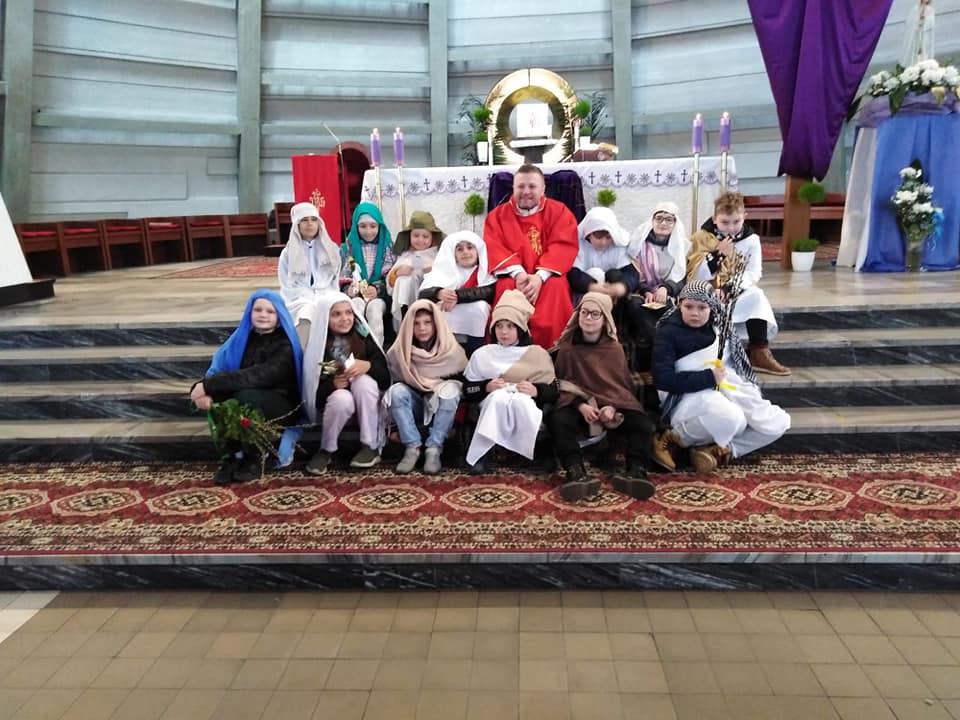 2022.04.10 Niedziela Palmowa. Msza św. z udziałem dzieci. Procesją wjazdu Jezusa do Jerozolimy. Wiele radości. Dziękujemy s. Edycie i Dzieciakom zaangażowanym we wcielenie się postaci P. Jezusa i Apostołów.